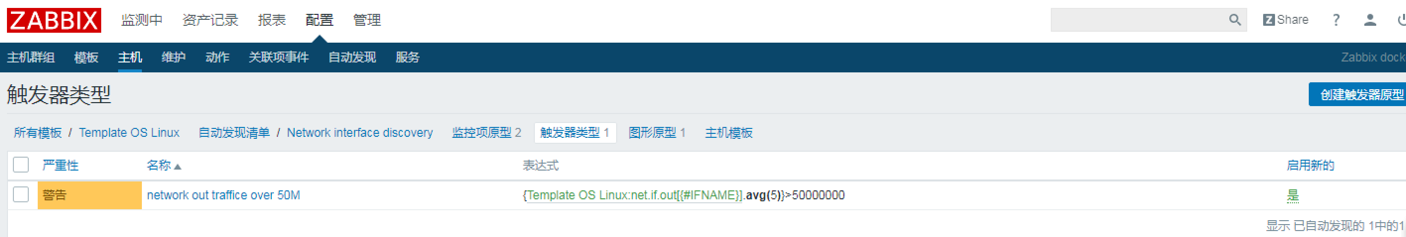 配置告警路径: Configuration–Templates–Template OS Linux–Discovery–Network interface discovery–Trigger Prototypes–Create trigger prototype
